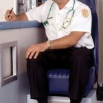 The EVS 1800 is an ambulance attendance seat with integrated child restraint system. This space saving seat allows crews to transport uninjured children weighing 20-65 lbs in a five point safety harness. When it is not needed, the child seat tucks behind the seat back to serve as a traditional ambulance attendance seat.